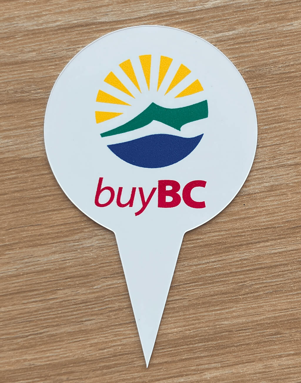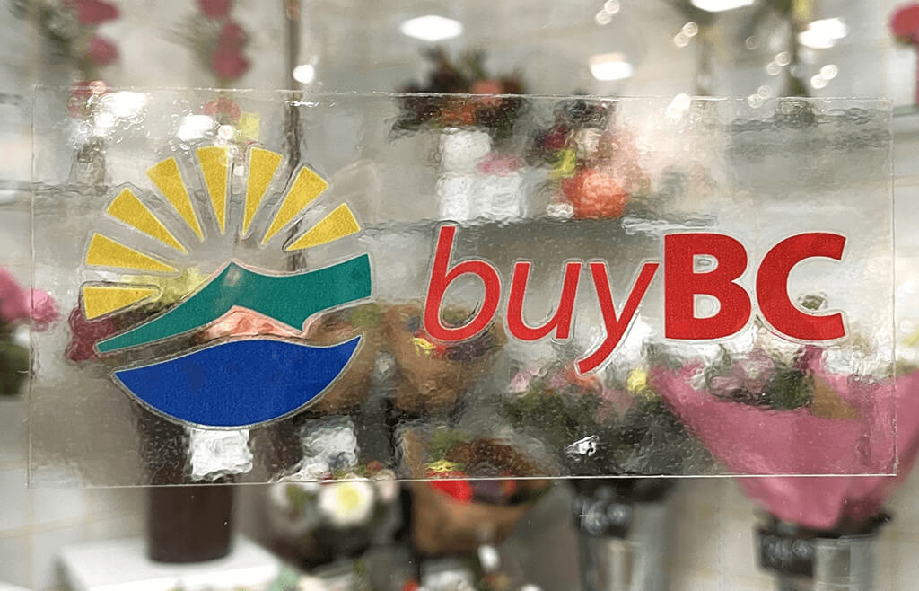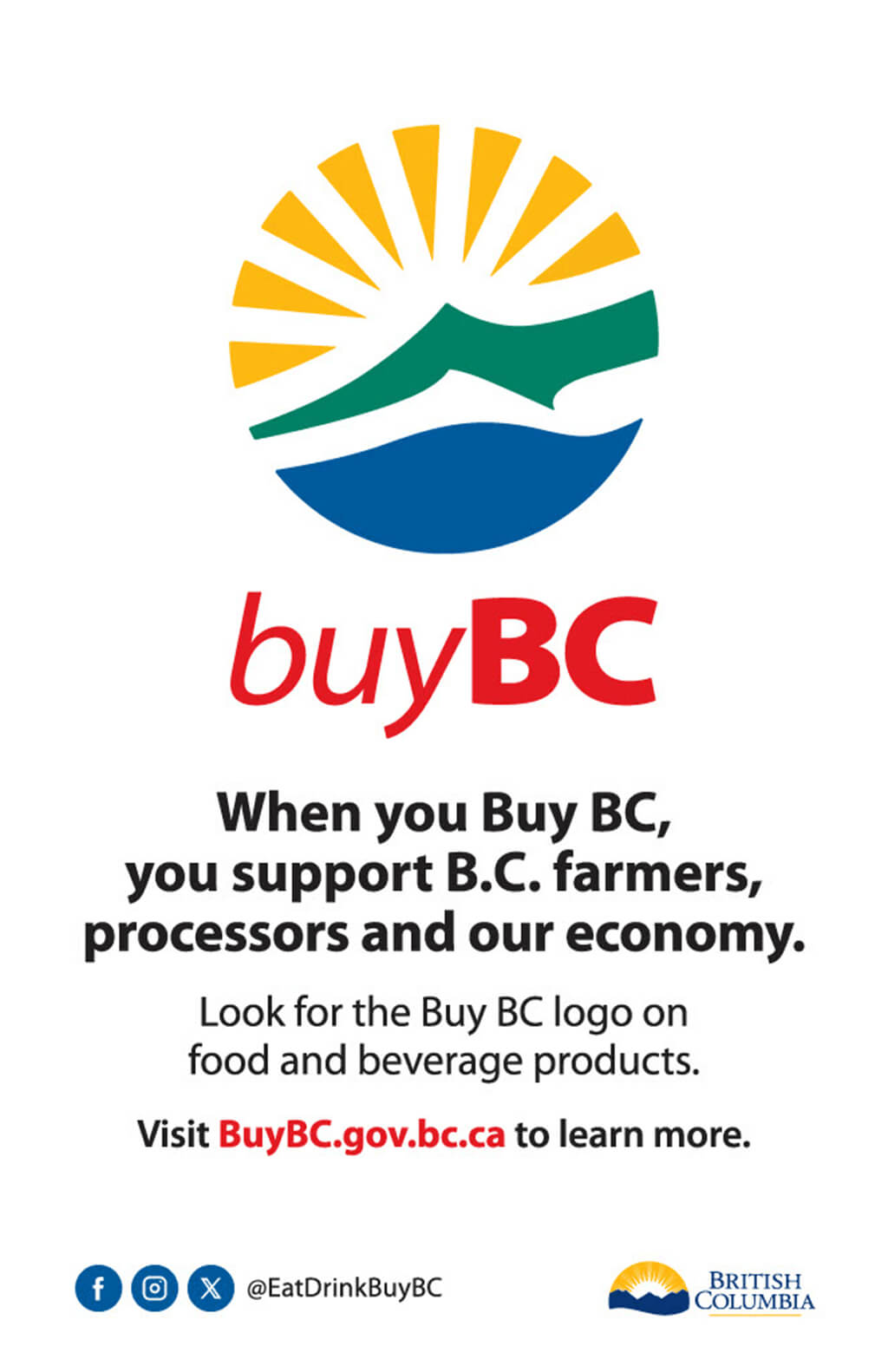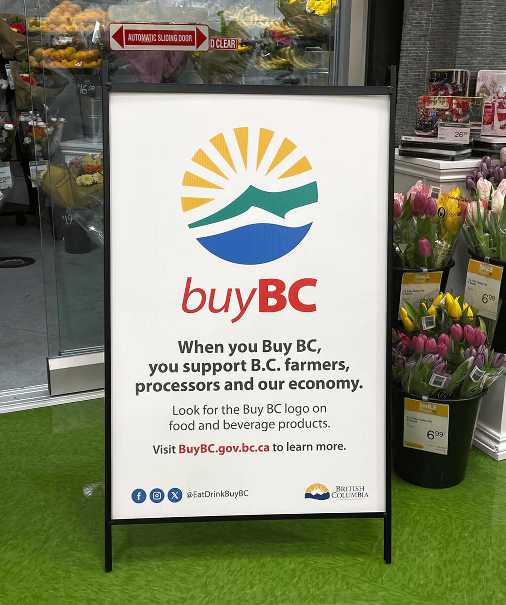 These describe what Buy BC is and encourage customers to look for the logo in your store. Use these near entrances, floral coolers, seasonal produce displays, or other high-traffic areas.