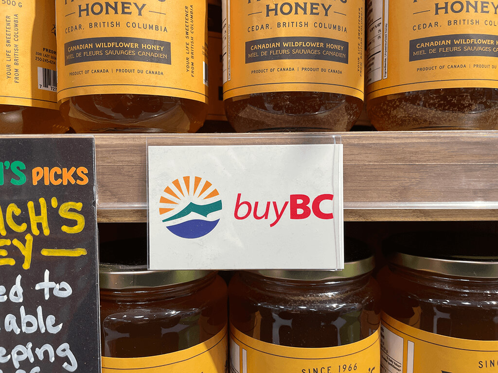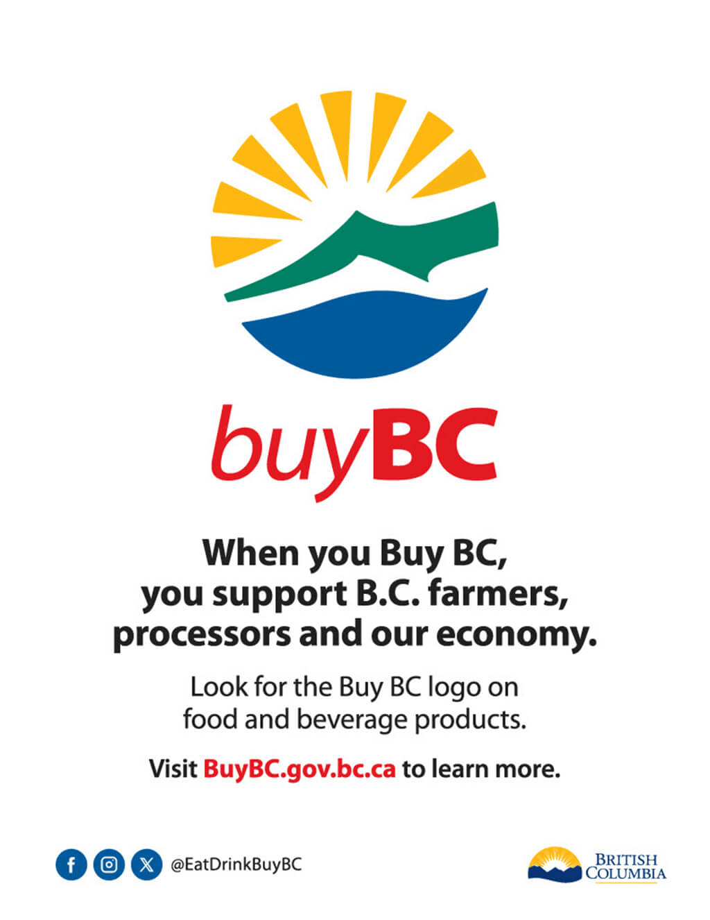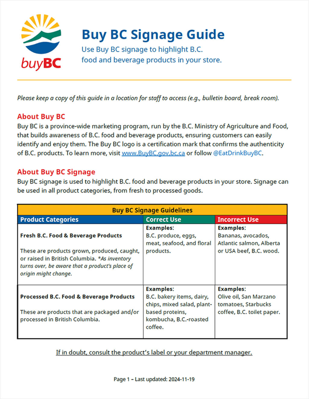 These describe what Buy BC is and encourage customers to look for the logo in your store. Use these near entrances, floral coolers, seasonal produce displays, or other high-traffic areas.