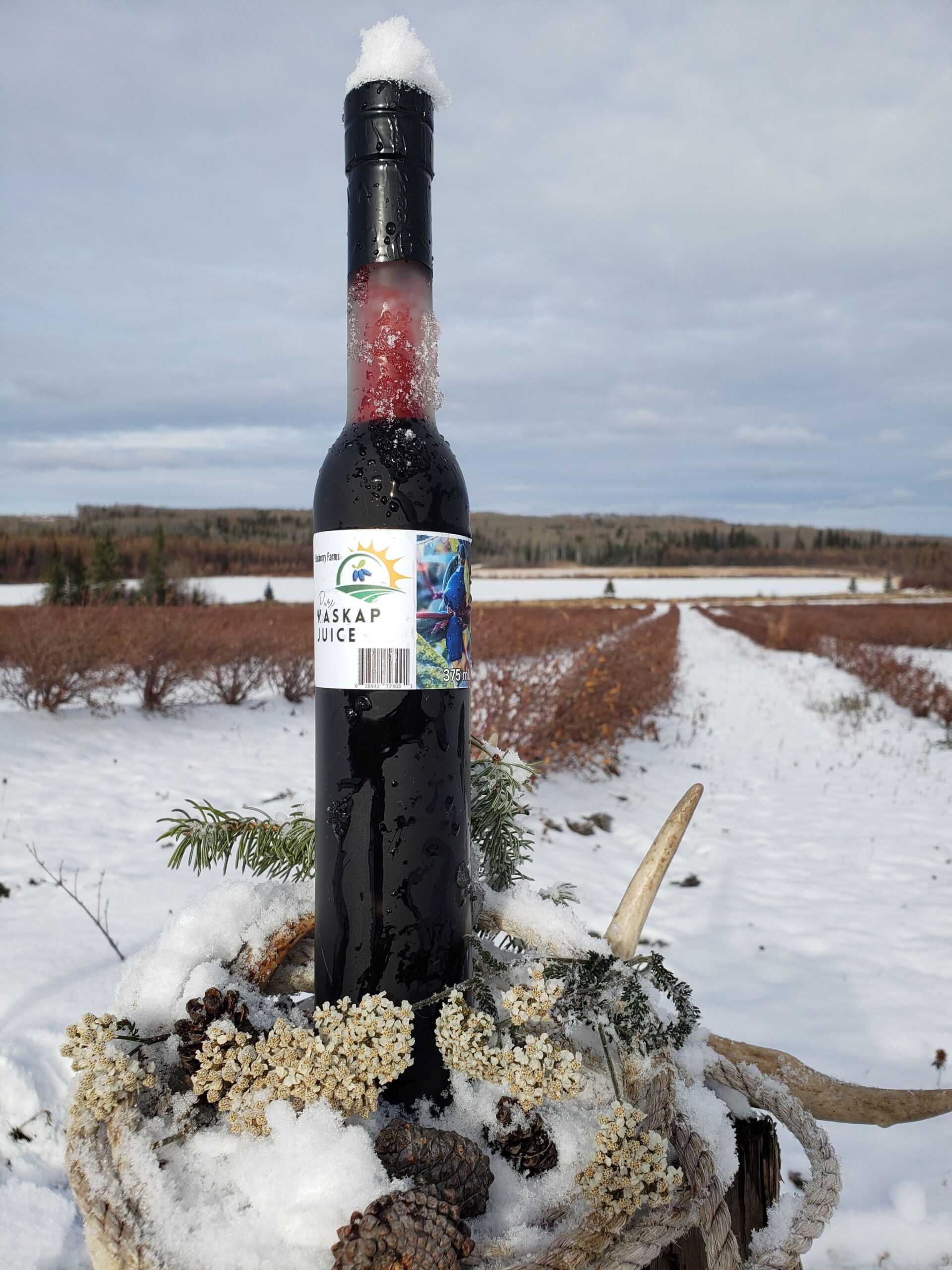 Hasberry Farms Haskap Berry Juice. 100% haskap juice. A rich drink with a full body flavour. Sweet with a tang. Great on it’s own, or mixed with a multitude of drinks, such as apple or pear juice, ginger ale, sparkling lime water and more. The lovely pop of flavour makes the health properties of very high levels of antioxidants, Vitamin C, Vitamin A, Fiber, calcium and potassium